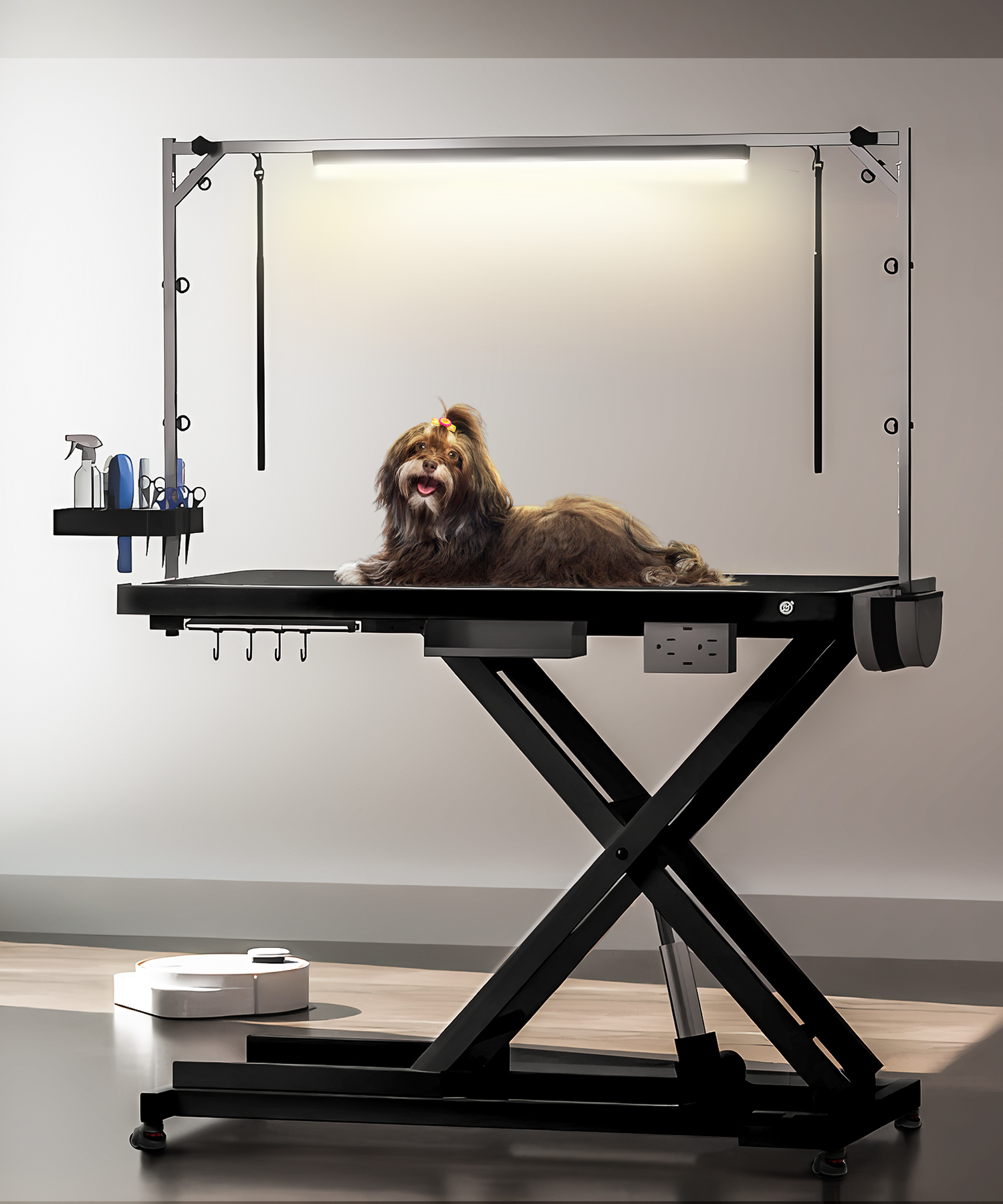 ALL-IN-ONE PROFESSIONAL GROOMING TABLE – Upgrade your grooming setup with this professional electric dog grooming table designed for large dogs and all breeds. Featuring LED lighting, easy button control, and smooth mobility, this dog grooming station is perfect for both commercial salons and home grooming—making every session efficient, safe, and comfortable